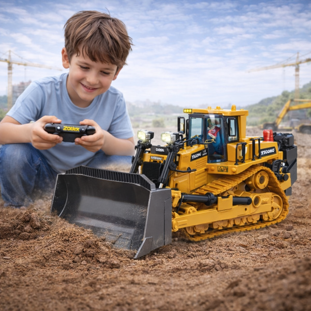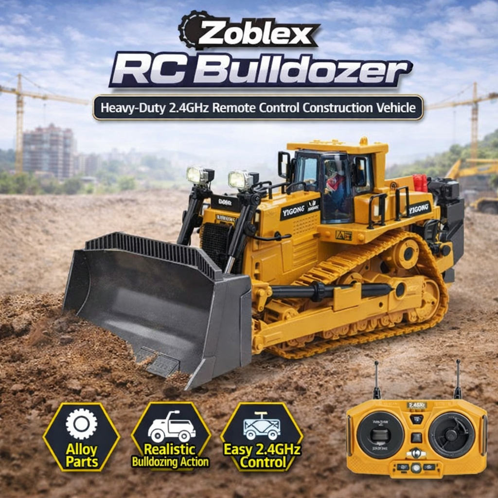 Equipped with a functional front loader bucket and responsive 2.4GHz remote control, kids can lift, push, and transport materials just like a real construction operator. Whether indoors or outdoors, the Zoblex™ RC Bulldozer turns any space into a construction zone.