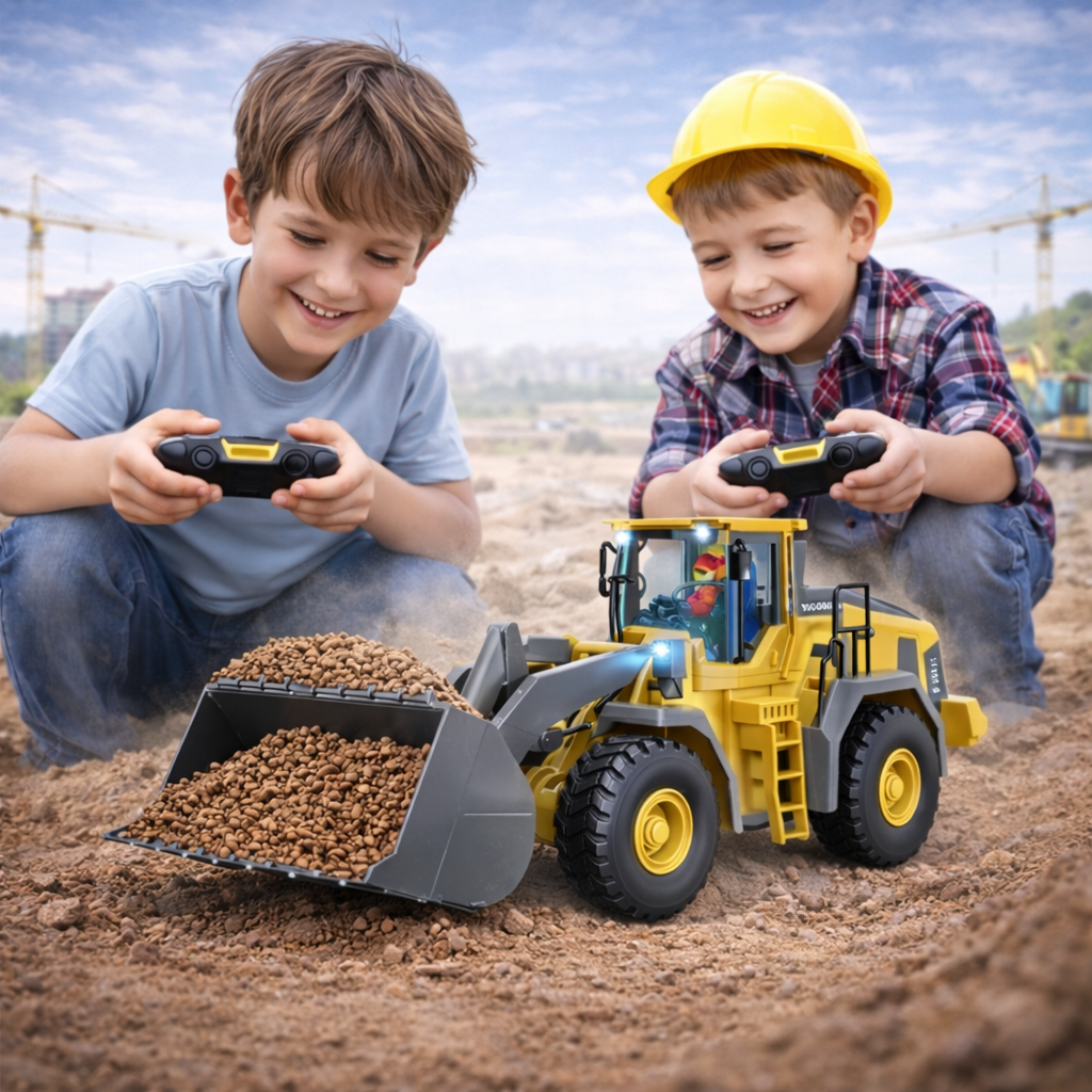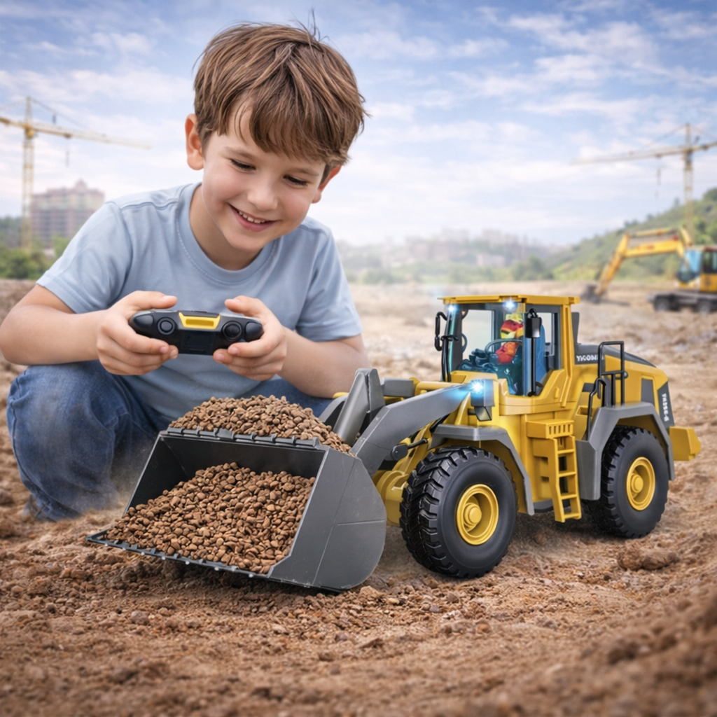 Let young builders take charge of real construction power with the Mlx™ RC Loader — a realistic, heavy-duty remote control construction vehicle designed for hands-on action. Built with durable alloy components and reinforced plastic, this loader delivers strong lifting power, smooth driving, and authentic job-site performance.